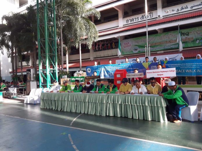 The event consisting of a peace walk and peace song contest was held at the Islamic College Thailand in Bangkok on July 15th in attendance with students, faculties, and journalists. To spread a culture of peace, the peace walk took place from the Tonburi Youth Center to the Islamic College Thailand and the speeches calling for a sustainable peace secured in legal framework continued.