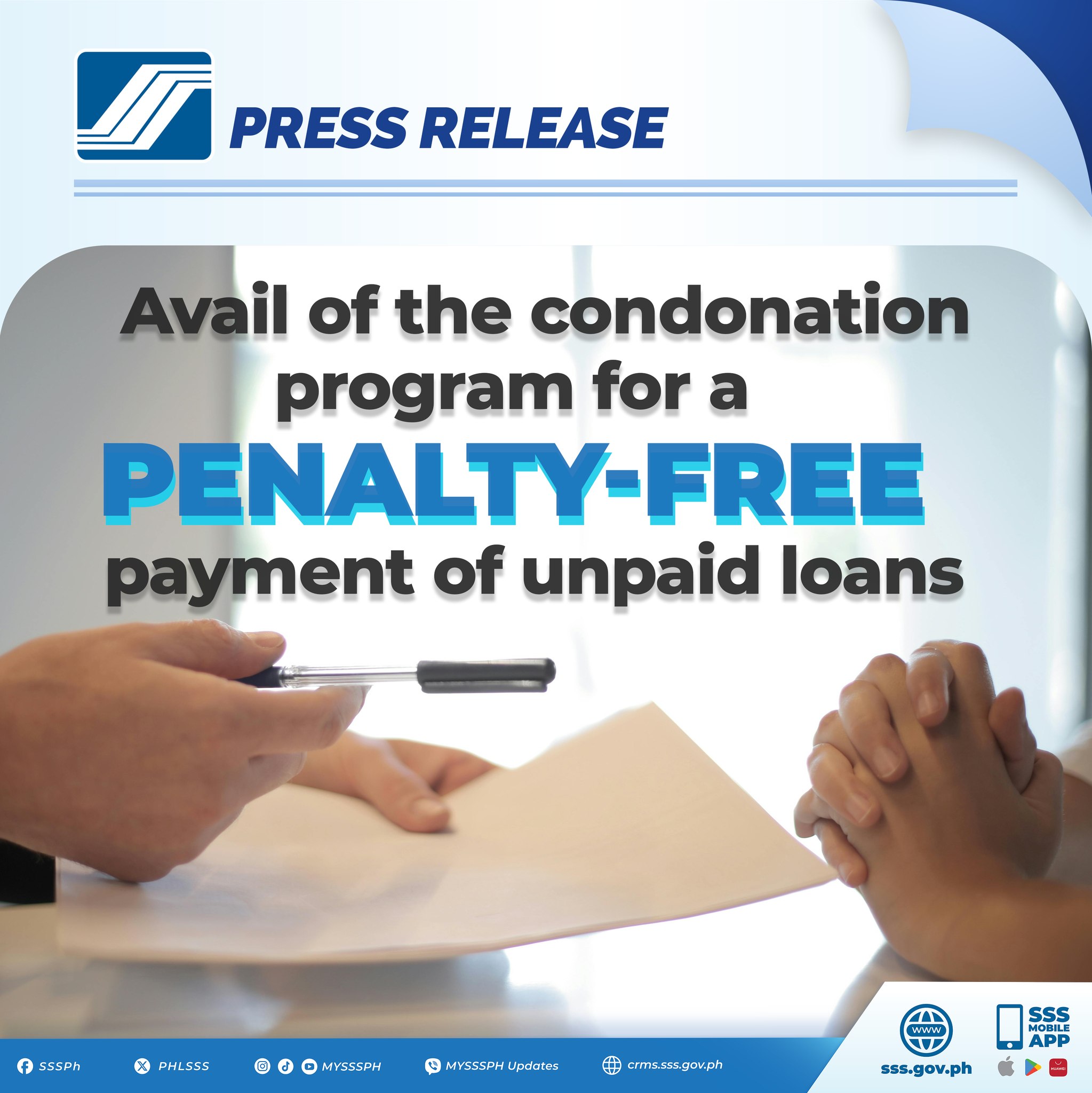 “Nais naming hikayatin ang aming mga miyembro na may hindi nababayarang mga pautang na kunin ang pagkakataong ito na bayaran ang kanilang mga past-due na pautang nang walang mga parusa sa pamamagitan ng isang madaling paraan ng pagbabayad. Inilunsad namin ang programang ito bilang isang kaluwagan upang matulungan ang aming mga miyembro na nahihirapang tuparin ang kanilang mga obligasyon sa pautang sa SSS. Available ang offer na ito habang tumatagal ang programa,” Capulong said.