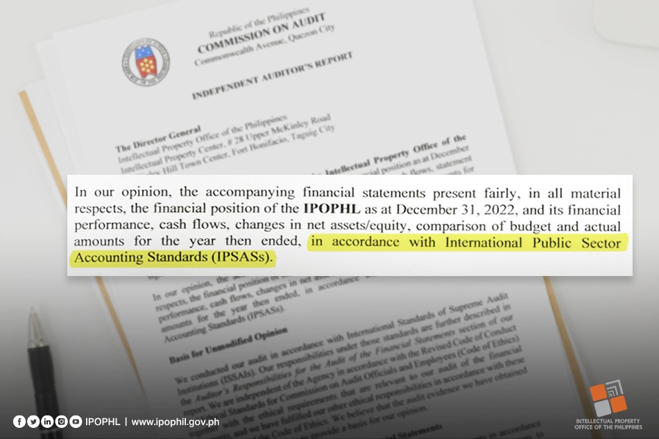 Ang Intellectual Property Office of the Philippines (IPOPHL) ay muling nakakuha ng “unqualified or unmodified opinion” mula sa Commission on Audit (COA) para sa mga financial statement nito noong 2023. Ang tagumpay na ito ay minarkahan ang ika-11 magkakasunod na taon na natanggap ng IPOPHL ang prestihiyosong resulta ng audit na ito.