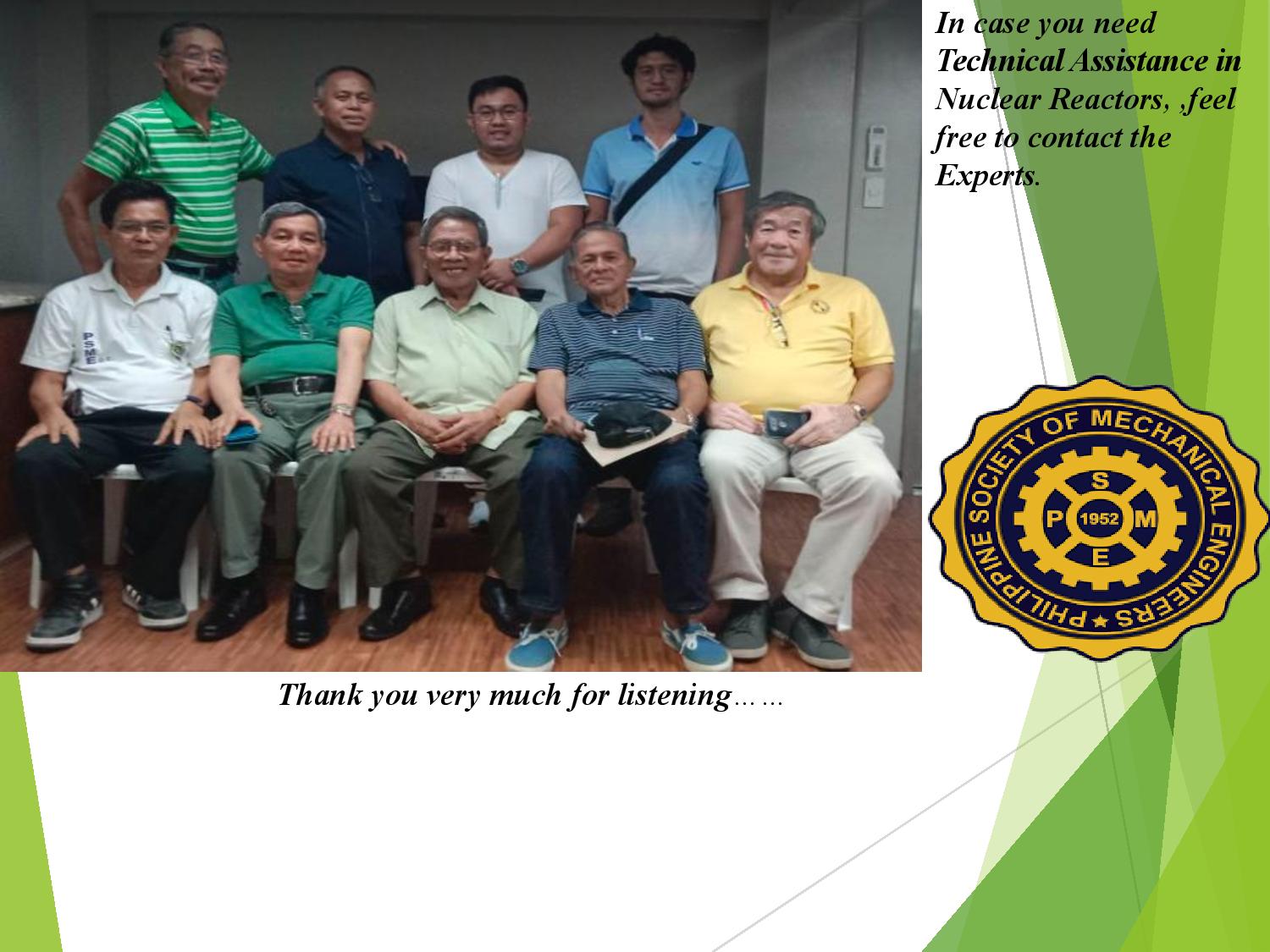 Sa layuning tiyakin ang seguridad sa enerhiya at pangmatagalang kaunlaran, muling pinaigting ng Philippine Society of Mechanical Engineers, sa pamamagitan ng presentasyon ni Engr. Roberto A. Lozada, MIEAust.,NZIME, PME, isang rehistradong ASEAN Engineer, ang pagsisikap na buhayin ang nuclear energy program ng bansa. Ang hakbang na ito ay nakaangkla sa makasaysayang “Atoms for Peace” na inisyatiba na unang iminungkahi ni U.S. President Dwight D. Eisenhower noong 1953.