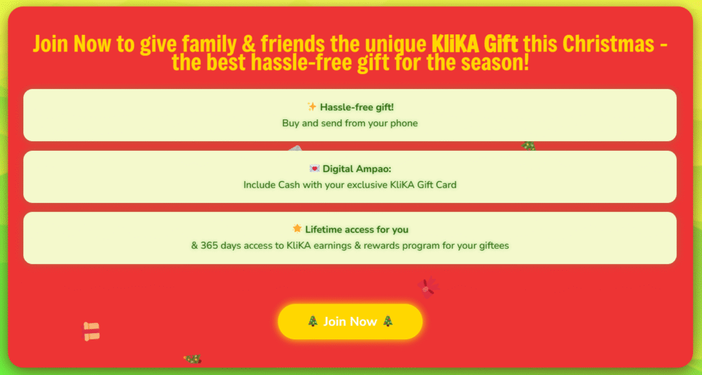 At its core, KliKA revives the beautiful Filipino tradition of the “ampao” – a red envelope containing money gifted during special occasions. KliKA’s Digital Ampao brings this tradition into the 21st century, allowing you to include cash with an exclusive KliKA Gift Card.