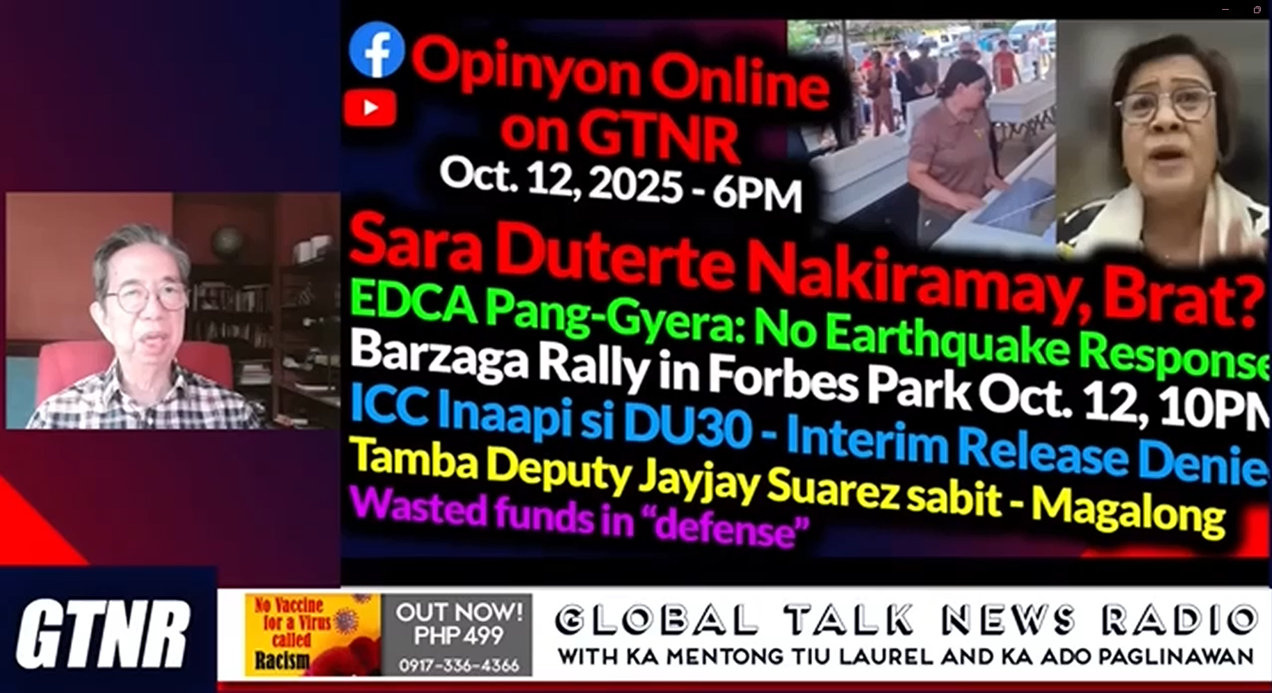 The program strongly defended Congressman Francisco “Kiko” Barzaga, who has been labeled “insane” by some political opponents and media. The hosts turned the criticism back on his accusers, quoting, “A sane person to an insane society must appear insane.” They argued that Barsaga’s focus on corruption scandals makes him a target for those who wish to maintain the status quo. The hosts also promoted an anti-Marcos protest rally called by Barzaga scheduled for the evening of October 12.