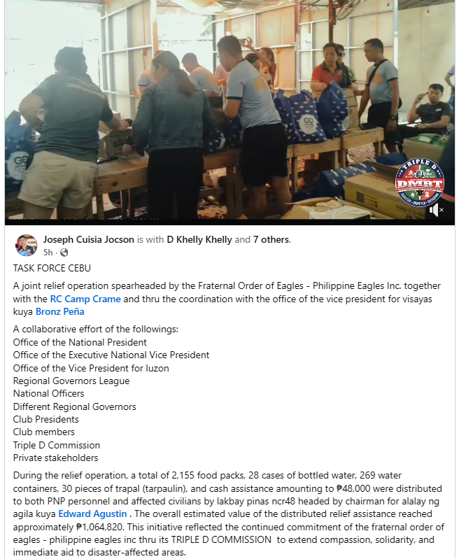 In a significant display of unity and civic spirit, a coalition of fraternal organizations, government offices, and private stakeholders successfully conducted a large-scale relief operation for communities and personnel affected by a recent disaster in Cebu.