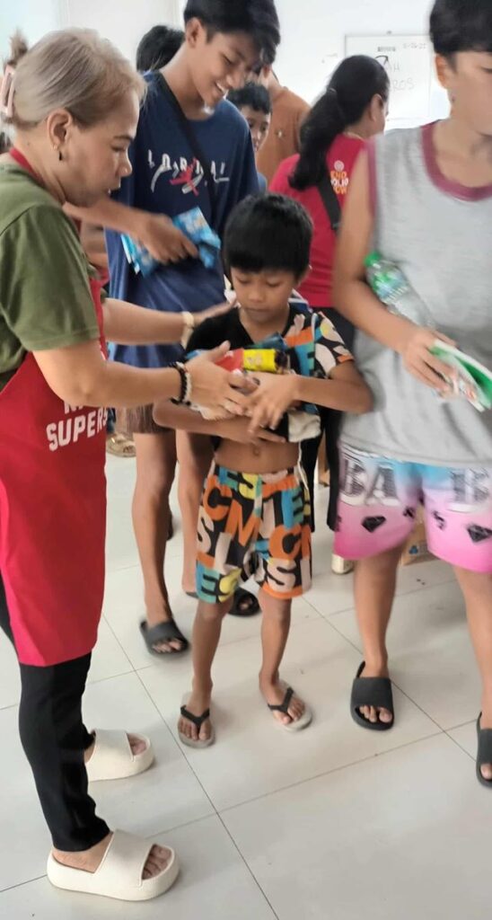 That simple “yes” ignited a wave of generosity, mobilizing a coalition of compassion. The Galang family, the Our Lady of the Abandoned volunteers, Food Access Philippines (Birch Tree donor), Riverside Homeowners Association Philippines, Climb Against Cancer (CAC), Munting Kusina, the Jollibee Food Program, and Ms. Ray Anne of San Miguel Foundation all answered the call, donating everything from meals and milk to protein products and notebooks.