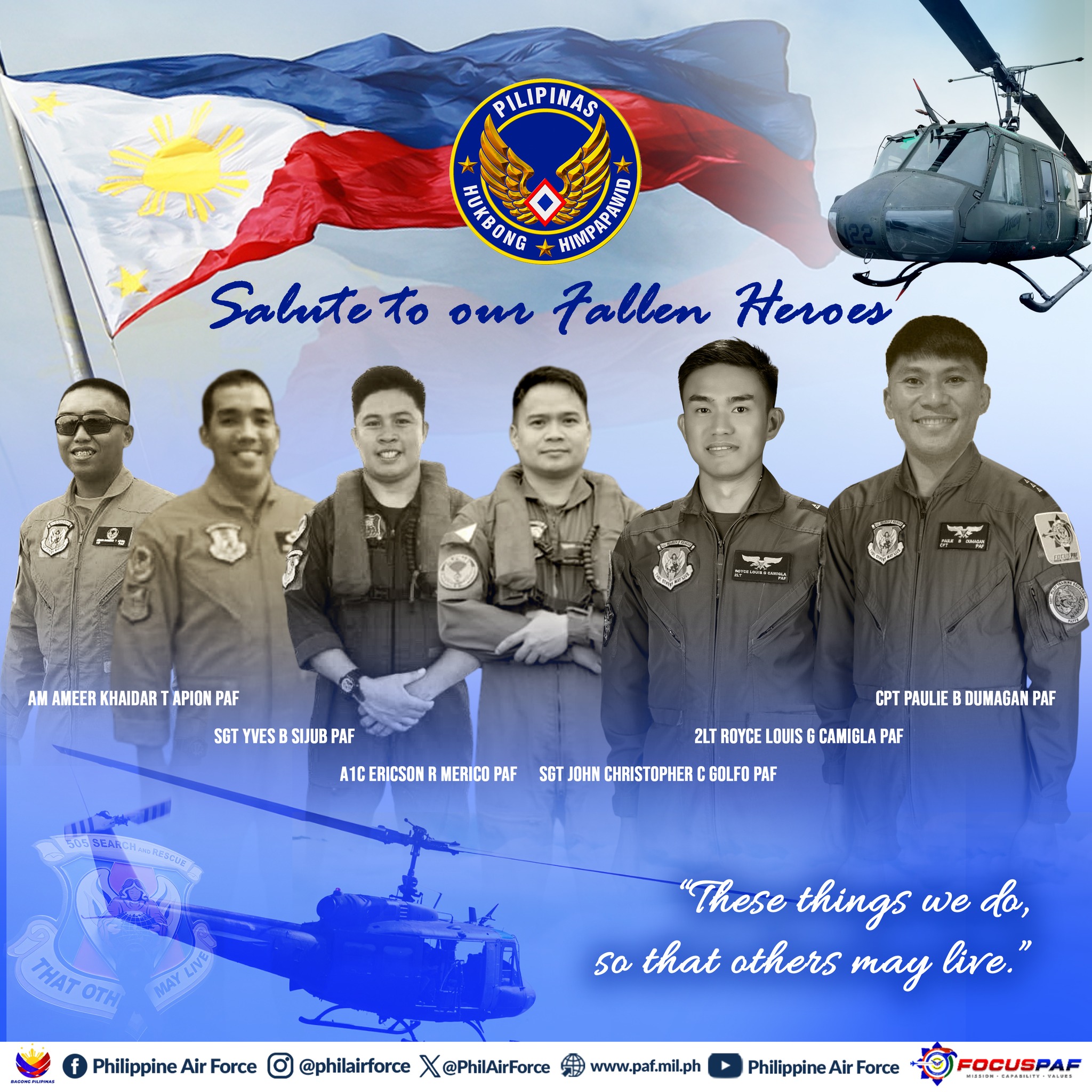 The Philippine Air Force (PAF) and the nation are in a state of mourning following the tragic crash of a UH-1 “Super Huey” helicopter in Loreto, Agusan del Sur, which claimed the lives of six valiant airmen on a humanitarian mission.