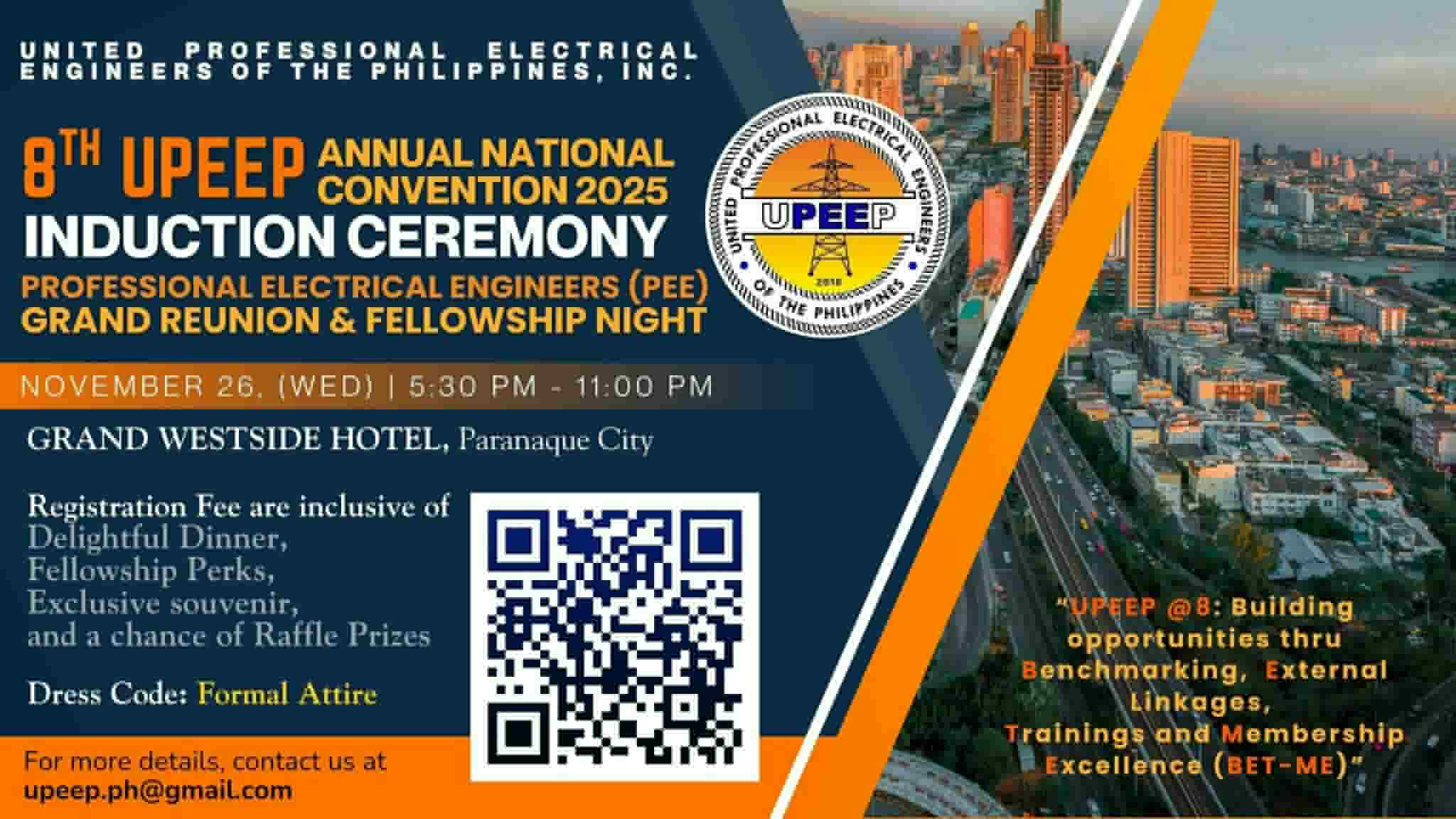 The United Professional Electrical Engineers of the Philippines, Inc. (UPEEP) is set to host a landmark event this November, gathering licensed professionals from across the nation for the 8th UPEEP Annual National Convention (ANC) 2025, which will also feature an Induction Ceremony for new members, a Grand Reunion, and a Fellowship Night.