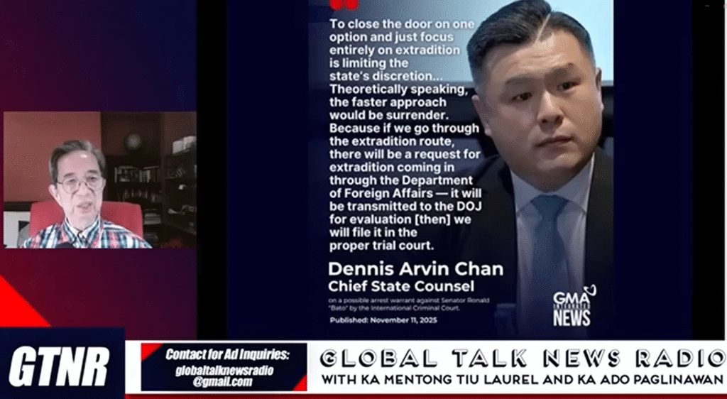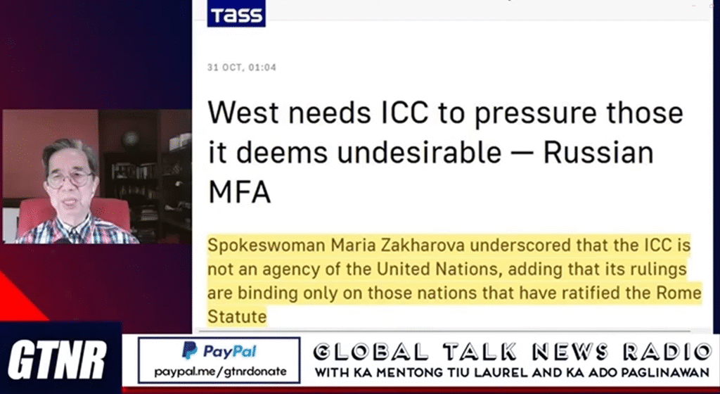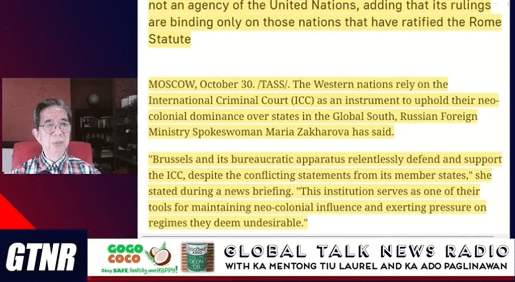 A central pillar of the critique focused on the legal proceedings surrounding Senator Ronald “Bato” dela Rosa. Former Diplomat Ado Paglinawan, Herman Laurel and Joshua Pasion said that the Department of Justice (DOJ), citing an official referred to as “Chan,” is seeking to bypass Philippine extradition laws and Supreme Court rules to “surrender” the senator to the International Criminal Court (ICC) with undue haste. This was framed as a politically motivated maneuver to sideline a key political opponent, violating national sovereignty and due process. The program reinforced this by citing Russia’s view that the ICC is a tool of Western “neo-colonial dominance.”