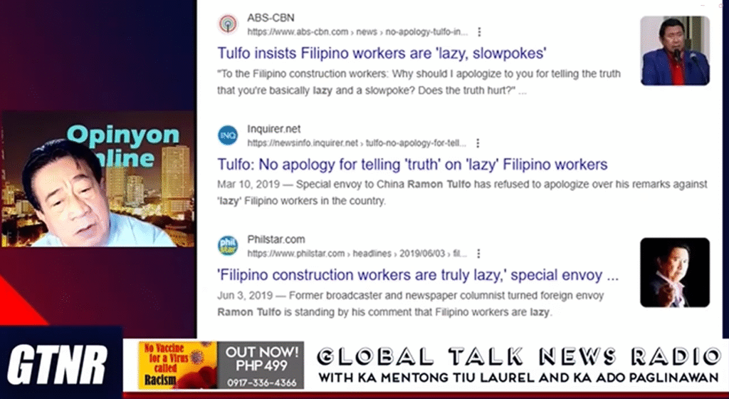 • Character Attack: Ramon Tulfo is heavily discredited, with hosts listing past controversies and legal cases to question his credibility. The government’s decision to investigate the list is portrayed as foolish and complicit.