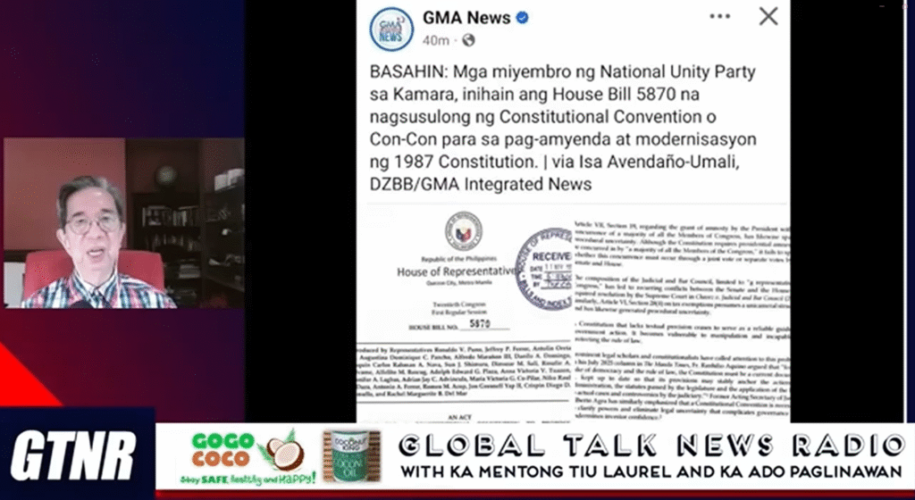 The program frames the renewed push for a Constitutional Convention to adopt a parliamentary system not as genuine reform, but as a self-serving and undemocratic plot orchestrated by the Marcos administration and its ally Gloria Macapagal-Arroyo, designed primarily to consolidate their own power by cynically circumventing presidential term limits, strategically blocking Vice President Sara Duterte’s anticipated succession in 2028, and altering the nation’s economic provisions to favor foreign ownership at the expense of national sovereignty.
