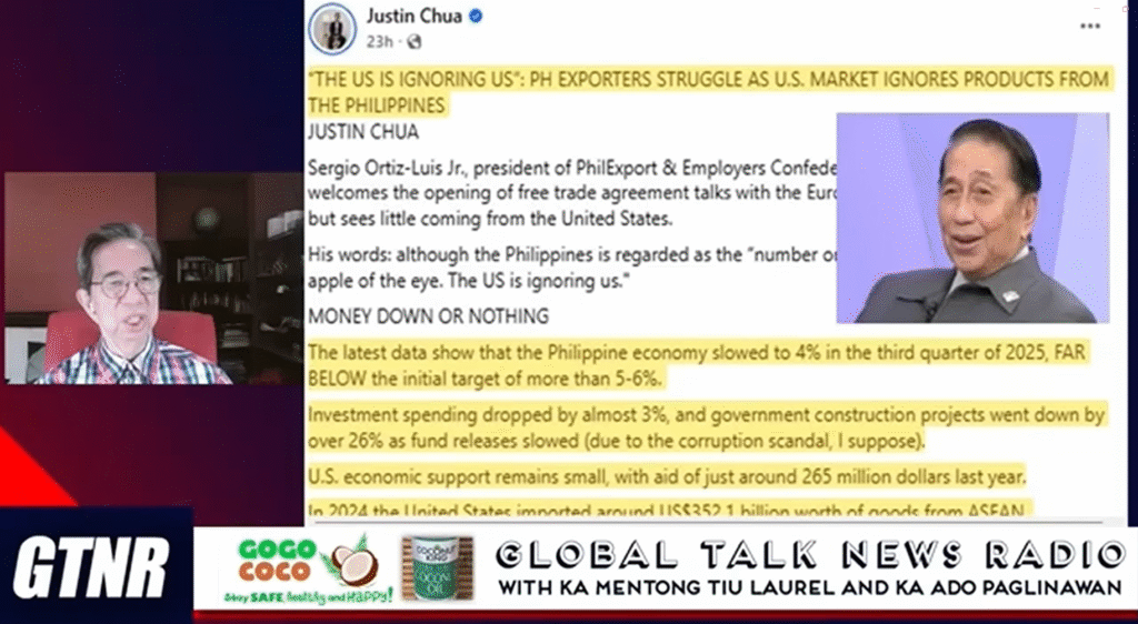 • The Economic Reality: The program highlighted a 40.5% collapse in Foreign Direct Investment (FDI) as a “huge blow.” They also cited business leader Sergio Luis Ortiz, who pointed out that the Philippines lags severely behind ASEAN neighbors in US imports, asking, “If we are a quote-unquote number one ally, why is our trade footprint so small?”